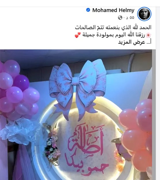 ونشر حلمي عبر صفحته على فيسبوك اسم المولودة، وكتب: “الحمد لله الذي بنعمته تتمّ الصالحات، رزقنا الله اليوم بمولودة جميلة، أسأل الله أن يجعلها من مواليد السعادة، واخترنا لها اسمًا يملأ القلب نورًا، أصالة حمو بيكا”.