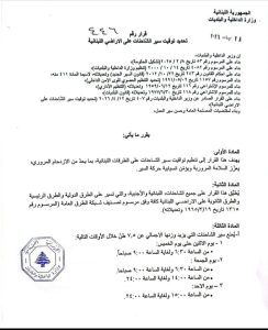 عممت وزارة الداخلية والبلديات القرار رقم 446 تاريخ 28/4/2026 حول تعديل توقيت سير الشاحنات على الأراضي اللبنانية.