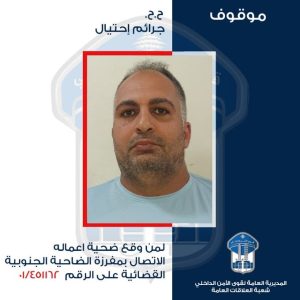 ونتيجة المتابعة والتحريات المكثّفة، تمكّنت مفرزة الضاحية الجنوبية القضائية في وحدة الشرطة القضائية من توقيفه، ويدعى: ح. ح. (مواليد عام 1981، لبناني).